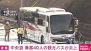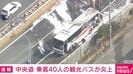 中央道 乗客40人の観光バスが炎上 速報 2026/02/18 11:07 【映像】焼け焦げた観光バス(現場の様子) この記事の写真をみる(2枚) 東京・日野市を通る中央道で、乗客40人を乗せた観光バスが燃える火事がありました。【映像】焼け焦げた観光バス(現場の様子) 午前9時すぎ、中央道下りの石川パーキングエリア付近で「観光バスが燃えている」と110番通報がありました。 警視庁などによりますと、火はおよそ40分後にほぼ消し止められました。 けが人はいないということです。 警視庁などはエンジントラブルが原因とみて調べています。(ANNニュース) この記事の画像一覧 【画像】焼け焦げた観光バス(現場の様子) 【映像】林家ペー、火事で全焼した自宅へ「貯金はほとんどない」 「火災は兵器によるもの」…災害時のデマに騙されない方法は? この記事の写真をみる(2枚) Twitter