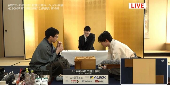 こんなの見たことない!?藤井聡太王将&永瀬拓矢九段の“進化系”いちご大福が話題「初めて見た」「ねぎまみたい」 将棋藤井聡太,永瀬拓矢 2026/02/18 11:44 拡大する 将棋の藤井聡太王将(竜王、名人、王位、棋聖、棋王、23)に永瀬拓矢九段(33)が挑戦する「囲碁将棋チャンネル ALSOK杯第75期王将戦七番勝負」が2月18日、和歌山市の「和歌山城ホール」で第4局2日目の対局が行われている。難所で迎えた午前のおやつには、両者が“進化系”いちご大福を注文。珍しいスタイルがファンの話題となった。 こんないちご大福見たことない!?藤井王将は、「いちご大福串」とドリンクに「生姜丸しぼり Wakayama GingerAle」を注文。永瀬九段は「いちご大福串」と「一手みかん大福」、「和歌山産まりひめいちご100%ジュース」、「あら川の桃60%果汁入りドリンク」、「コーヒースターズ(ホット)」を注文した。 続きを読む