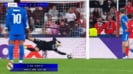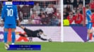 左サイドからのクロスをDFディーン・ハイセンが頭でクリアしたが、そのこぼれ球をベンフィカのMFフレデリク・アウルスネスに拾われ、ペナルティーエリア手前からミドルシュートを打たれてしまう。低弾道で強烈な一撃は、ディフレクション(当たってコースが変わる)してゴール左隅へと飛んだ。