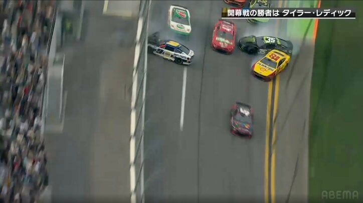 「なんちゅうレースや」デイトナ500は劇的幕切れ チェッカー手前で2位以下相次いで脱落「全員事故ってるじゃねーか!」ファン騒然 NASCAR 2026/02/19 11:17 拡大する 【NASCAR】開幕戦 デイトナ500(日本時間2月16日) アメリカで人気のストックカーレース、NASCAR(ナスカー)の2026年開幕戦が伝統の地・デイトナで開催された。200周の長い戦いも終わろうかという最終周のチェッカー寸前で、“ほぼ全員”多重クラッシュに巻き込まれるというドラマチックな展開が待っていた。 ラストラップ、最終ターン(コーナー)に入るところで、トップは9号車のチェイス・エリオット。2番手にはゼイン・スミスの38号車がいたが、そのすぐ後方にいたタイラー・レディックの45号車とライリー・ハーブスとの35号車が、外側から一気に38号車をパスする。 続きを読む