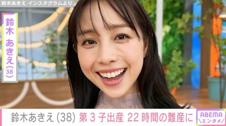 元『王様のブランチ』リポーター・鈴木あきえ(38)、22時間に及ぶ難産で第3子出産「3人育児も私らしく」 ファンから祝福の声 ABEMAエンタメ鈴木あきえ 2026/02/22 09:59 拡大する 2017年まで、TBS系の情報番組『王様のブランチ』でリポーターを務めていた、タレントの鈴木あきえ(38)が、第3子出産を報告した。 19歳から約10年半、ブランチリポーターを務めていた鈴木。2017年にテレビディレクターの男性と結婚することを発表し、2018年9月に第1子となる男の子、2020年12月に第2子となる女の子の出産を報告した。 Instagramでは、クリスマスを過ごす様子やリビングに置いた子どもたちの勉強机など、育児の様子を発信している。 続きを読む