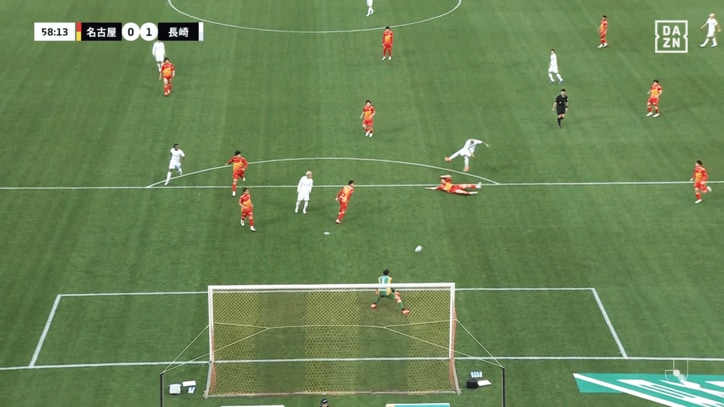 元日本代表GKが唖然…「格が違うわ」長崎FWの“理不尽キャノン砲”にファン仰天!「パンチ力えぐい」“黄金の左”でゴラッソ JリーグV・ファーレン長崎,名古屋グランパス 2026/02/22 07:00 拡大する 【明治安田J1百年構想リーグ】名古屋グランパス 1-3 V・ファーレン長崎(2月21日/豊田スタジアム) V・ファーレン長崎のFWチアゴ・サンタナが、“黄金の左”で強烈なキャノンシュートを決めた。失点した元日本代表GKが唖然とするほどの鮮烈弾が話題となっている。 2月21日の明治安田J1百年構想リーグ第2節で、長崎は名古屋グランパスと対戦。外国人FWたちの活躍で3ゴールを奪い、J1復帰後初勝利を収めた。 続きを読む