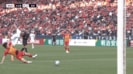 ボールミート後に身体が飛び上がるくらい激しいフォロースルーで放ったシュートは、地を這う弾道でゴールに一直線。名古屋の元日本代表GKシュミット・ダニエルは両手を下げて正面でボールをキャッチしようとしたが、バウンドするごとに加速するシュートを止められない。手のひらをすり抜けて、ネットが揺れた。