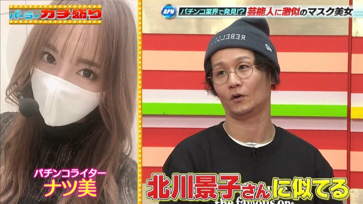 この見た目で大食い!?北川景子そっくりのマスク美女、その素顔の美しさに騒然「うわー」「きれい」 パーラーカチ盛り ABEMA店 2026/02/25 11:30 拡大する パチンコ業界の超絶美女の素顔に、スタジオが騒然となった。2月20日放送の「パーラーカチ盛りABEMA店」のニュースコーナーで紹介されたライター・ナツ美の、その完璧すぎるビジュアルと素顔が反響を呼んでいる。 マスクを外す前から「北川景子似」とハードルが爆上がりしていたナツ美。さらば青春の光・東ブクロが思わず「うわー、かわいい!」と声を漏らす中、ついにその素顔が公開されると、スタジオは「きれい!」「押切もえさんみたいな感じもある」と、ため息混じりの絶賛に包まれた。 続きを読む