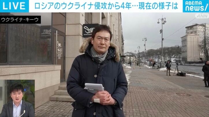 「家の中にテントを張って、炭を焚いて暖をとる」「二日に一度警報アラートが鳴る」…ロシアのウクライナ侵攻から4年 キーウから中継 ニュース解説 2026/02/24 20:27 拡大する ロシアによるウクライナ侵攻の開始から4年が経過した。解決への道筋がいまだ見えない中、ANNロンドン支局 醍醐穣記者が、現地の首都キーウから中継で今の惨状を報告した。 醍醐記者は現地について「独立広場では追悼式典の準備が進んでいるが、セキュリティ上の理由からカメラを向けることすらできない緊迫した状況。先週から滞在しているが、二日に一度ほど携帯に警報のアラートが鳴る」「ロシアによるエネルギーインフラへの執拗な攻撃でガス・暖房など生活に欠かせないライフラインが傷つき、停電も起こり、街も去年に比べて暗い印象を受ける」と伝える。 続きを読む