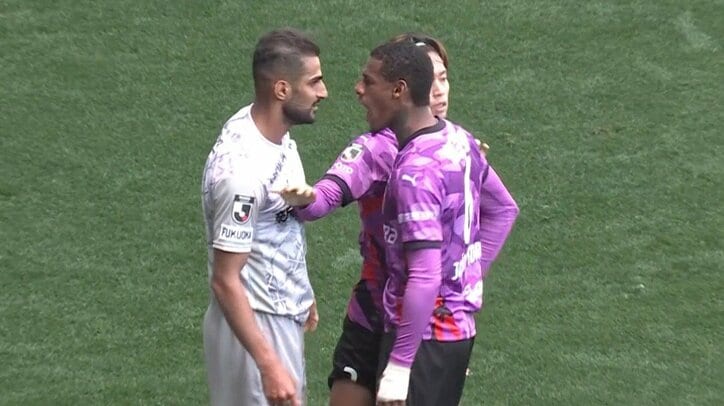 「怖すぎる」助っ人同士が一触即発のフェイスオフ「ど迫力の睨み合い」「キレすぎやろ」球際の攻防からエキサイト→スタジアム騒然! Jリーグアビスパ福岡,京都サンガF.C. 2026/02/24 22:04 拡大する 【明治安田J1百年構想リーグ】京都サンガF.C. 2-0 アビスパ福岡(2月22日/サンガスタジアム by KYOCERA) 京都サンガF.C.のMFジョアン・ペドロとアビスパ福岡のFWシャハブ・ザヘディが一触即発の事態を迎えた。ライン際の激しい攻防から睨み合いに発展し、ファンたちからも驚きの声が上がっている。 2月22日、明治安田J1百年構想リーグの第3節で京都は福岡とホームで対戦。両チームともに3ー4ー2ー1のミラーゲームとなり、ジョアン・ペドロはダブルボランチの一角、ザヘディはワントップで先発した。 続きを読む