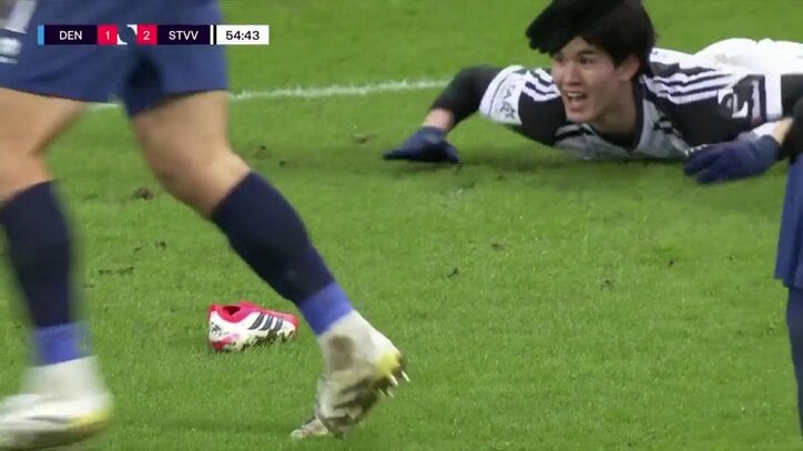 「これカードだろ」22歳日本代表FW、足踏まれ脱げたスパイクを蹴り飛ばされ…“怒り”アピールもノーファウル「蹴ったやつ誰」「態度悪いな」まさかの愚行にファン慷慨 ベルギーリーグ 2026/02/25 12:03 拡大する 【ベルギーリーグ】デンデル 1-4 シント=トロイデン(日本時間2月22日/フローラン・ベークマンスタディオン) シント=トロイデンに所属する日本代表FWの後藤啓介が、相手選手の愚行に苛立ちを見せた。脱げたスパイクを蹴り飛ばすまさかの行動に、ファンたちも怒りのボルテージが上がっている。 シント=トロイデンは日本時間2月22日、ベルギーリーグ第26節でデンデルと敵地で対戦。後藤はワントップに起用され、MF伊藤涼太郎、MF山本理仁、DF谷口彰悟、DF畑大雅、GK小久保玲央ブライアンとともにスタメン出場となった。 続きを読む