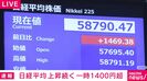 午前中に取引時間中の最高値をおよそ2週間ぶりに更新した日経平均株価は、午後も値上がりしています。上げ幅は一時1400円を超えました。