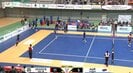 女子バレーボールでコート後方のスタッフに直撃しそうなボールを選手が身を挺してブロック。ベンチ選手がとった咄嗟の行動をカメラが捉えていた。