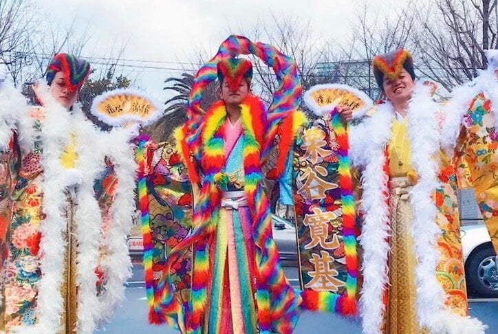 ド派手衣装で世間を騒がせた福岡のヤンキー新成人たちの“成人式後の意外すぎる行動”「イオンモールで…」 愛のハイエナ 2026/03/04 17:00 拡大する かつて福岡の成人式をド派手な衣装で席巻した新成人たちが、式典の後にショッピングモールへ繰り出し、周囲を驚かせていた意外な過ごし方を明かした。 ABEMAで配信中の『愛のハイエナ5』は、“愛”をテーマに人間の『欲望』をあぶり出し、つい覗き見したくなる“瞬間”にしゃぶりつく遠慮を知らないドキュメントバラエティである。ニューヨーク(嶋佐和也、屋敷裕政)がMCを務め、さらば青春の光(森田哲矢、東ブクロ)がレギュラー出演している。今回の企画では、過去にヤバい格好で成人式を賑わせた若者たちが今何をしているのかを調査すべく、福岡連合元総長のバッドボーイズ・佐田正樹が現地へと向かった。 続きを読む