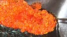 では、赤い色をしたとびこは、甘じょっぱい味付けがされたキムチ味でした。