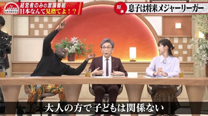 ボビー・オロゴンの“斬新な動き”に古舘伊知郎も困惑? 経営者たちと「息子をメジャーリーガーにする方法」を議論 For JAPAN 2026/02/28 07:00 拡大する 実績のある経営者が日本の課題に挑む全く新しい「実績重視」の提言トーク番組、ABEMA『For JAPAN シーズン3 #44』が2月27日に配信された。番組では「息子をメジャーリーガーにする方法」について議論した。 株式会社Fied 代表取締役社長 原啓司氏は「息子は将来メジャーリーガーになる」と宣言。 きっかけは原氏の息子が4〜5歳のときに日本ハムの試合を観戦し、当時在籍していた大谷翔平選手を見たことだった。息子の「大谷翔平選手のようになりたい」という目標を叶えるため、原氏は自身の投資コンサルとしてのスキルを駆使し、メジャーリーガーになった選手たちについて、幼少期から徹底的に調査・分析。その甲斐あって小学校6年時にはプロへの登竜門とも呼ばれるNPBジュニアトーナメントに選出された。 続きを読む