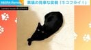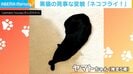 前足をクロスさせてエビフライのしっぽを完璧に表現していた黒猫のヤマトちゃん(推定5歳)。この投稿には「焦げてしまいましたね」「新メニューの匂わせみたい」と、黒猫ならではのコメントが飛び交っている。