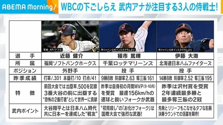 まもなくWBC開幕!注目すべき選手は?初戦相手は?侍ジャパンの“見どころ”を紹介 ABEMA Morning 2026/03/02 13:03 拡大する ワールド・ベースボール・クラシックが、いよいよ開幕する。野球日本代表「侍ジャパン」の初戦は、3月6日に行われる台湾戦だ。ニュース番組『ABEMA Morning』では、侍ジャパンの“見どころ”を独自に伝える。 侍ジャパンの注目すべき3人の選手を紹介する。1人目は福岡ソフトバンクホークスの近藤健介選手。前回大会では驚異の出塁率5割を記録し、“恐怖の2番打者”として存在感を発揮した。今回も大谷選手や鈴木選手へ“つなぐ”役割も期待されているが、何より、大谷選手とはファイターズ時代のチームメイトで、気楽にコミュニケーションが取れる選手というのはベンチの空気を作るうえでも、大きい存在である。 続きを読む