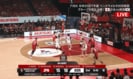 そのままアウトオブバウンズになるかと思われたが、安藤がシュートした時点ではまだフリースローライン付近にいたホーキンソンが、猛ダッシュからエンドライン際で大ジャンプ。なんとバックボードの裏側でボールを空中でキャッチすると、そのままノールックのバックオーバーハンドパスで、外で待っていたSG富永啓生へと見事に繋いでみせたのだ。