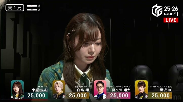 「35歳には見えん」「かわいい優勝」麻雀界のビジュアルクイーン・東城りお、安定感抜群の入場シーンに喜びの声/麻雀・Mリーグ Mリーグ 2026/03/04 10:00 拡大する 「大和証券 Mリーグ2025-26」3月3日の第1試合、BEAST X・東城りお(連盟)が、その圧倒的なビジュアルと洗練されたスタイルで、入場シーンから視聴者の心を奪い去った。 かつて芸能界を志して秋田から上京し、現在は麻雀界の第一線で活躍する東城。その美貌はもはや説明不要だが、この日もファンの期待を裏切らない完璧な姿を披露した。注目を集めたヘアスタイルは、艶やかなロングヘアにゆるめのウェーブをかけ、アクセントとして上品な髪留めをあしらったアレンジ。大人の余裕と可憐さが共存する仕上がりに、カメラが彼女を捉えた瞬間から中継画面は華やいだ。 続きを読む