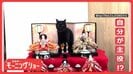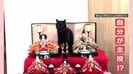 ひな人形の前にいるネコちゃん。