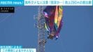 映像には、乗っていた人が気球につながれたロープにつかまり、鉄塔へと移る様子が映っている。