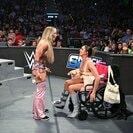 もはや試合に集中せず、ティファニーはチェルシーとの罵倒合戦に夢中。この隙をついたカイリがリング上からダイブ。しかし背中に目がついているかのようにティファニーがさり気なく回避し、カイリはその勢いのまま車椅子のチェルシーへと雪崩れ込んだ。カイリの流れ弾に被弾したチェルシーはホットパンツのままド派手に横転。それでも最大の"被害者"として絶叫し、オーバーリアクションで場内を制圧する。