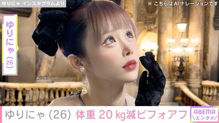 3歳児ほどのウエストが話題 ゆりにゃ、体重20kg減のビフォーアフター公開 ABEMAエンタメゆりにゃ 2026/03/05 12:18 拡大する “異次元のスタイル”が注目されている人気インフルエンサーのゆりにゃ(26)が、20kg太っていた頃と現在を比較した写真を公開した。 身長162cm、ウエストは3歳児ほどのサイズだという47.6cmと体のサイズを公表しているゆりにゃ。Instagramでは、そのスタイルがわかる水着姿やストイックなトレーニング動画を投稿している。 4日に更新したストーリーズでは、「ビフォー、ゆりにゃ本人」と、ジーンズをはいたおなかや二の腕を出している写真を公開。続けて、「アフター、20kg痩せた」とおなかが見える現在の姿も披露した。 続きを読む