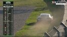 実況の増田隆生アナウンサーが「タイヤがないですか?」と聞くと、アマノ氏が「取れちゃってるんじゃないの?」と答える。チャステインのマシンは、コース外のエスケープゾーンから砂煙を上げつつコースへ戻ろうと試みているが、無情にも右リアタイヤがホイールごと外れている様子も映し出された。