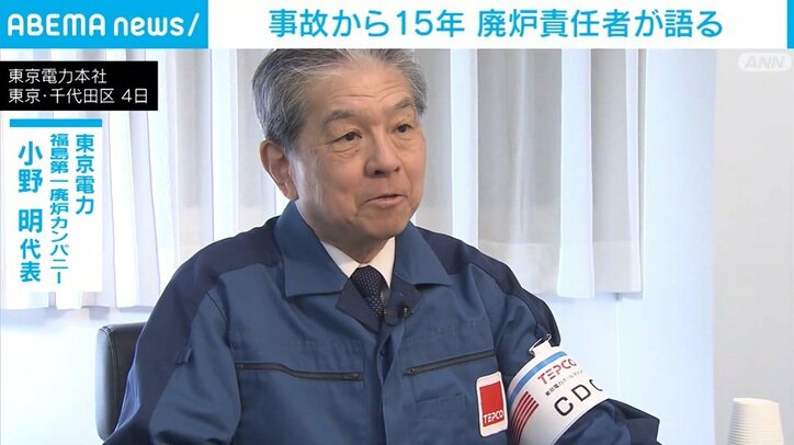 事故から15年 廃炉責任者が語る 速報 2026/03/06 11:15 拡大する 東京電力・福島第一原発の廃炉責任者がインタビューに応じ、事故から15年を経て、核燃料などが溶けて固まった燃料デブリの取り出し以外は、先が見通せる状態になったという認識を示しました。 東京電力ホールディングの副社長でもある小野明代表は、廃炉作業の進捗について、「汚染水を処理した水は安全に海に放出されている」「使用済み燃料のプールからの取り出しも成果を上げている」などとした上で次のように述べました。東京電力・福島第一廃炉カンパニー小野明代表「15年を総括するとデブリ以外のものに関しては、かなり先が見通せるような状態になってきたかなと思ってます」 続きを読む