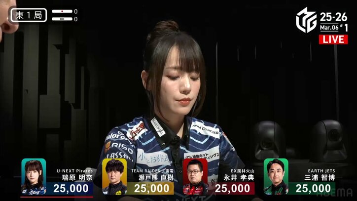気合いの大きさが髪型にも出た?美人ママ雀士・瑞原明奈、特大の“お団子ヘア”がファンに大好評「あきな可愛い」/麻雀・Mリーグ Mリーグ 2026/03/07 10:00 拡大する 「大和証券Mリーグ 2025-26」3月6日の第1試合、U-NEXT Pirates・瑞原明奈(最高位戦)が見せた華やかなヘアスタイルと力強い闘牌がファンの視線を釘付けにした。 レギュラーシーズンもいよいよ終盤戦を迎え、セミファイナルシリーズ進出を争うボーダーライン上の攻防が激化している。瑞原の所属するU-NEXT Piratesは現在、レギュラーシーズン突破がかなり厳しくなっている苦しい状況にある。最後までしっかり戦い抜く姿を見せようと入場した瑞原の頭上には、いつも以上に存在感を放つ大きな「お団子ヘア」が鎮座していた。 続きを読む