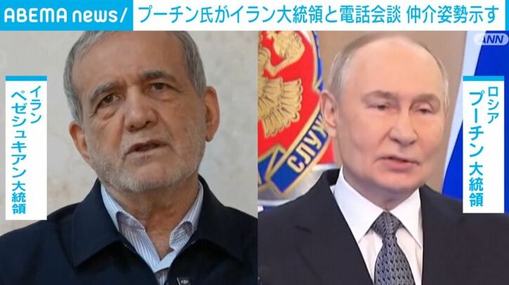 プーチン氏がイラン大統領と電話会談 仲介姿勢示す 速報 2026/03/07 19:20 拡大する ロシアのプーチン大統領がイランのペゼシュキアン大統領と電話会談し、外交的な問題解決に向けイランと周辺国の仲介に乗り出す姿勢を示しました。 ロシア大統領府の発表によりますと、プーチン大統領は6日、ペゼシュキアン大統領との電話会談で、イランの最高指導者ハメネイ師の死去と、市民の犠牲に弔意を示す一方、外交での問題解決を改めて訴えました。 そのうえで、イランが報復攻撃を続ける周辺国の首脳とも緊密な連絡を取っていると伝えたということです。 続きを読む