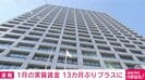 1月の労働者の実質賃金は前の年の同じ月と比べて1.4%増え、13カ月ぶりにプラスになりました。基本給などの「所定内給与」は33年ぶりの高い伸び率となっています。