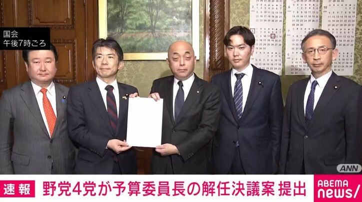 さきほど、中道改革連合や参政党、チームみらい、共産党の4党は「重要な予算案の審議を強引に打ち切った」として坂本委員長の解任決議案を提出しました。