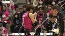花粉症の影響か…女子バレーで、“鼻に詰め物”をしながらプレーする選手の姿をカメラが捉えた。強烈なスパイクを決めた直後、コートサイドで珍光景が見られた。