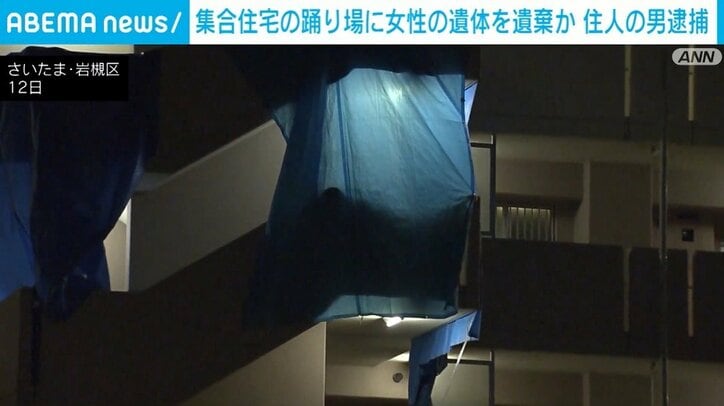 集合住宅の踊り場に女性の遺体を遺棄か 住人の男逮捕 速報 2026/03/13 11:36 拡大する さいたま市の集合住宅の踊り場に女性の遺体を遺棄したとして、住人の男が逮捕されました。 さいたま市岩槻区の無職・広瀬剛容疑者(44)は、11日の午後9時ごろから翌日の午前7時ごろまでの間に、自宅がある集合住宅の共用階段の踊り場に女性の遺体を遺棄した疑いがもたれています。 警察によりますと、遺体は広瀬容疑者の70代の母親とみられ、自宅から運ばれたとみられています。 遺体に目立った外傷はなく、死後数日以上が経過しているということです。 続きを読む