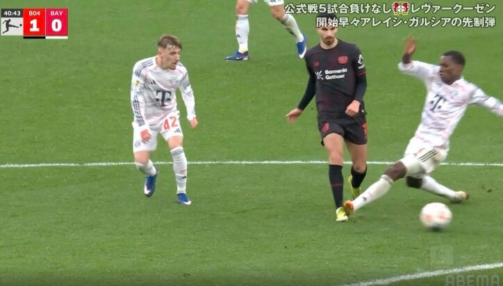 「退場しかないだろ!」バイエルンFW、超危険タックルで“まさかの結末”「エグい曲がり方」足首グニャリ…衝撃の一発退場にファン騒然「恐怖映像やん」 ブンデスリーガ 2026/03/15 06:30 拡大する 【ブンデスリーガ】レヴァークーゼン 1-1 バイエルン(日本時間3月14日/バイアレーナ)バイエルンのFWニコラス・ジャクソンが危険タックルを見舞って一発退場となった。ふくらはぎを痛めているエースの代役として期待されたが、まさかの結末にファンからは厳しい声が上がっている。今季30ゴールを挙げているFWハリー・ケインは、ふくらはぎの違和感で前節のボルシアMG戦を欠場していた。日本時間3月14日に行われたブンデスリーガ第26節のレヴァークーゼン戦ではベンチ入りするも、2試合続けてジャクソンがスタメンに名を連ねている。 続きを読む