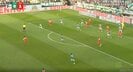 前半からボールを刈り取り続けていた佐野は、48分にも得意のボール奪取でチームを助ける。相手陣内の右サイドでFKを獲得すると、佐野はやや低い位置でこぼれ球への対応を任された。するとMFパウル・ネーベルが入れたクロスボールはボックス内でクリアされ、逆方向へと流れていく。これをブレーメンのMFカメロン・プエルタスが追いかけて、カウンターを狙う状況だった。佐野はいち早くこの危機を察知。一気に加速して追いかけていき、プエルタスが頭でボールをコントロールした瞬間、ボールと相手の間に体を滑り込ませてブロック。最後は右足でサイドラインにクリアした。