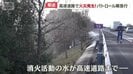 何台もの消防車が到着しています。火災が起きた現場は、高速道路の「のり面」。消火活動による水が、高速道路まで飛んできています。
