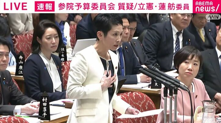 「武家社会は夫婦別姓。日本古来の伝統だというなら夫婦別姓では」蓮舫議員に問われた高市総理の答えは 蓮舫氏「両親は国際結婚だが名字違っても違和感ない」 速報,会見 2026/03/16 16:45 拡大する 16日の参議院予算委員会で、立憲民主党の蓮舫議員が、選択的夫婦別姓について質問した。 蓮舫議員は高市早苗総理に「戸籍による家族の一体感とは何ですか」と質問。高市総理は「戸籍において夫婦親子が同氏であるということでございます」と答えた。 これに対し蓮舫議員は「律令時代や武家社会において氏が持てる身分の人たちは、それは血統の呼称でした。だから夫婦別姓でした。江戸時代庶民は氏を持っていません。明治になって徴兵名簿管理等の必要性があって国民皆、氏を持つようになりました。でもその時もまだ夫婦別姓でした。夫婦同氏になったのは明治31年、家制度が入ってからです。日本古来の伝統だというのであれば夫婦別姓の方が伝統ではないですか」と問いただし、議場からは「そうだ!」の声もあがった。 続きを読む
