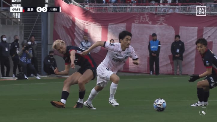 「マジで別格だ」大島僚太が鈴木優磨を吹っ飛ばす!「本当に怪我明け?」超強靭&華麗な“キング・ターン”にファン騒然「お金の取れる選手」 Jリーグ川崎フロンターレ,鹿島アントラーズ 2026/03/16 22:00 拡大する 【明治安田J1百年構想リーグ】鹿島アントラーズ 1-0 川崎フロンターレ(3月14日/メルカリスタジアム) 強さと上手さが光る至極のプレーだった。川崎フロンターレのMF大島僚太が、鹿島アントラーズのFW鈴木優磨の激しいプレスを逆に吹き飛ばしてターン。今季初出場となった背番号10のプレーが話題となっている。 3月14日の明治安田J1百年構想リーグ第6節で、川崎Fはアウェーで鹿島と対戦。試合前から注目を集めたのが、約5カ月ぶりに復帰した大島の姿だった。 続きを読む