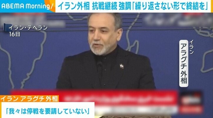 イラン外相 抗戦継続 強調「繰り返さない形で終結を」 速報 2026/03/17 08:10 拡大する イランのアラグチ外相はアメリカ・イスラエルとの戦闘について「二度と繰り返されない形で終結させなければならない」と主張し、抗戦を続ける考えを強調しました。 アラグチ外相は16日、アメリカのトランプ大統領が「イランは取引を望んでいる」と述べたことを念頭に「我々は停戦を要請していない」と否定しました。 その上で、「我々は戦争を求めていない。この戦争は二度と繰り返されない形で終結させなければならない」と主張しました。 続きを読む