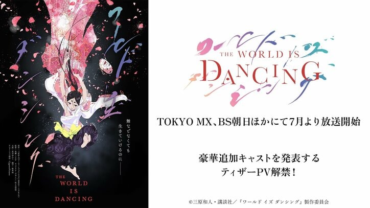 TVアニメ『ワールド イズ ダンシング』7月放送開始!小西克幸、内田真礼ら追加キャスト&ティザーPV公開 2026/03/17 20:30 拡大する TVアニメ『ワールド イズ ダンシング』が、2026年7月よりTOKYO MX、BS朝日ほかにて放送開始されることが決定した。放送時期の決定にあわせ、メインキャラクターのボイスを初披露する最新のティザーPVが公開されたほか、キャスト陣や、制作スタッフ情報が一挙に解禁された。さらに原作者による描き下ろしイラストに加え、コメントも到着した。 本作は、三原和人氏による漫画を原作とし、後に「能」を大成させる世阿弥が「鬼夜叉」と呼ばれていた時代を舞台に、独自の舞を模索していく姿を描く物語だ。 続きを読む 2026年冬アニメ(1月クール) 作品情報 もっとみる(67) Fate/strange Fake カヤちゃんはコワくない メダリスト 第2期 シャンピニオンの魔女 貴族転生 ~恵まれた生まれから最強の力を得る~