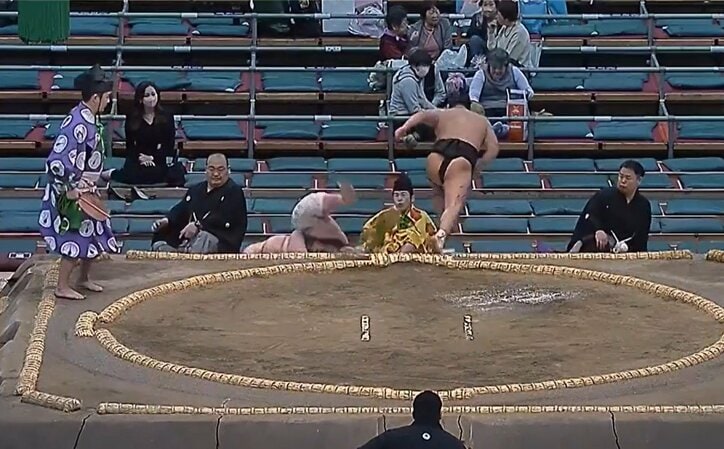 力士が走る、走る…!「あんなところまでw」升席のファンもお口“あんぐり” 熱戦直後に親方も思わず振り返る“珍光景”に館内笑い 大相撲 2026/03/18 07:24 拡大する <大相撲三月場所>◇十日目◇17日◇大阪・エディオンアリーナ 100キロを超える巨体が土俵を飛び出し、そのまま客席の奥深くまで走る、走る。手に汗握る攻防の末に“珍事”が発生。館内がどよめきと笑いに包まれ、升席のファンもお口あんぐり。審判の親方も思わず振り返る一幕があった。 三段目二十三枚目・東俊隆(玉ノ井)が、三段目十五枚目・聖冴(錣山)を突き落としで下した一番。東俊隆はこれで4勝目(1敗)を挙げ、3場所ぶりとなる嬉しい勝ち越しを決めた。 続きを読む