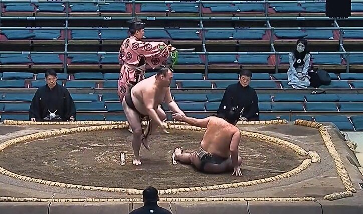 「だ、大丈夫ですか?」敗色濃厚が一転…まさかの展開に力士驚き 「おぉ」館内どよめき 大相撲 2026/03/18 10:08 拡大する <大相撲三月場所>◇十日目◇17日◇大阪・エディオンアリーナ 敗色濃厚だった力士が“まさかの展開”で逆転。勝利するも予想外の出来事に「だ、大丈夫ですか?」と相手力士を気づかい、館内からは「おぉ」とどよめきが沸き起こった。 序二段十八枚目・御室岳(伊勢ヶ濱)と序二段十八枚目・朝阪神(高砂)の一番。立ち合い強烈な右のど輪で相手の体を起こした朝阪神が一気に前に出た。 御室岳は土俵際いっぱいでピンチを迎え“勝負あり”と思われたが、白星濃厚の朝阪神が突如、右ひざがガクリと曲がり崩れ落ちる事態に。まさかの展開に御室岳も思わず「だ、大丈夫ですか?」というように心配して手を差し伸べ、朝阪神が起き上がるのを手伝っていた。その後、朝阪神は自ら歩いて土俵下へと降りていった。御室岳は朝阪神の“つきひざ”で勝利し3勝目。朝阪神は3敗目を喫した。 続きを読む