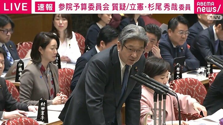 憲法上の制約で日本ができないこと「トランプ大統領がご存じかわからない」立憲議員が質問→高市総理「安倍総理のころに丁寧に説明している」 速報,会見 2026/03/18 14:56 拡大する 18日の参議院予算委員会で、立憲民主党の杉尾秀哉議員が、イラン情勢をめぐる問題を取り上げた。 杉尾議員はまず、トランプ大統領からホルムズ海峡に自衛隊の艦船を派遣するよう要請があったかどうかについて「ちょっと通告しておりませんが、さきほど小泉防衛大臣が『正式な要請はない』とおっしゃいましたが、非公式な打診はあったということですか?」と質問。 これに対し小泉大臣は「正式な要請はありませんし、自衛隊を派遣するという考えはありません」と答えた。これに杉尾議員は「いやいや」と異議を唱え、「答弁ズレてる」「答えてない」などの声も上がり、いきなり審議はストップした。 続きを読む