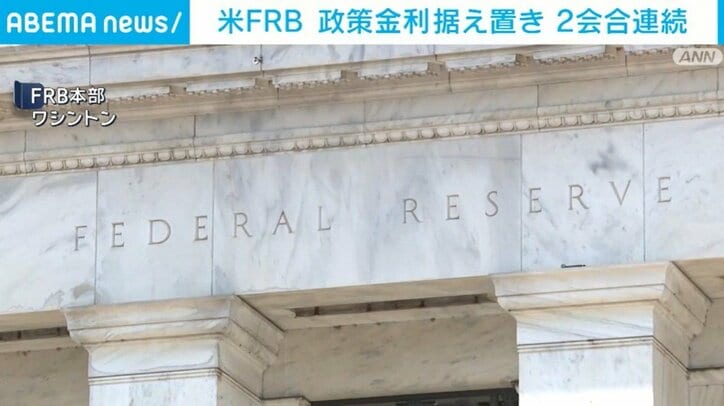 米FRB 政策金利据え置き 2会合連続 速報 2026/03/19 11:59 拡大する 緊迫するイラン情勢が続く中、アメリカのFRB=連邦準備制度理事会は利下げを見送り、2会合連続で政策金利を据え置くことを決めました。パウエル議長「ここ数週間で短期的なインフレ期待の指標が上昇している。中東の供給混乱による原油価格の高騰を反映している可能性がある」 FRBは18日、原油価格の高騰によるインフレや経済動向を見極めるため、利下げを見送り、2会合連続で政策金利を据え置きました。年内の利下げ回数の見通しについては、去年12月時点と変わらず1回となりました。 続きを読む
