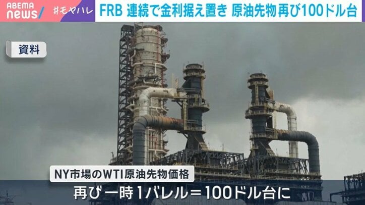 一方、18日のニューヨークの原油市場では国際指標のWTIの先物価格が再び、一時、1バレル=100ドル台を付けました。(ANNニュース)