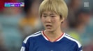 そしてそのまま、ほとんど角度のない位置から右足を力強く振り抜く。クロスを予想していた相手の意表を突く矢のようなシュートは、GKの頭上をぶち抜いてニアサイドから中央のゴール上に突き刺さった。