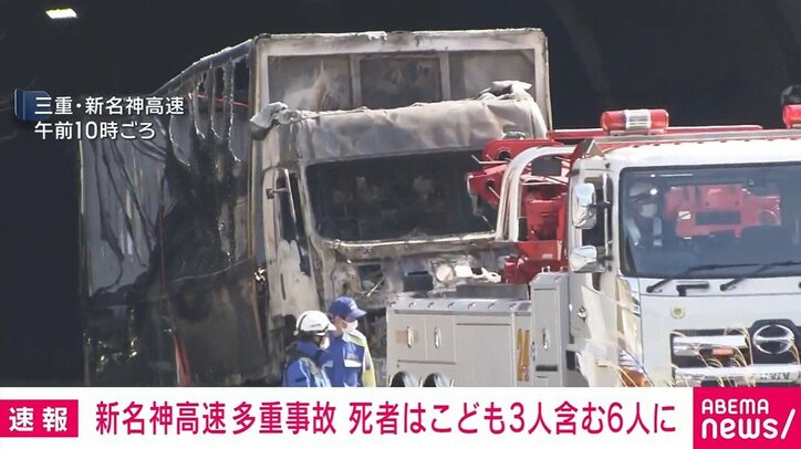 新名神高速 多重事故 死者は子ども3人含む6人に 速報 2026/03/20 16:46 拡大する 三重県亀山市の新名神高速下りで発生した多重事故で、消防によると死者は5人でしたが、警察はつい先ほど死者は6人だと発表しました。 1台の車に乗っていた性別不明の大人とみられる1人、もう1台の車に乗っていた大人の男女2人と性別不明の子ども3人が死亡したということです。 警察は身元の特定を進めています。(ANNニュース) 続きを読む