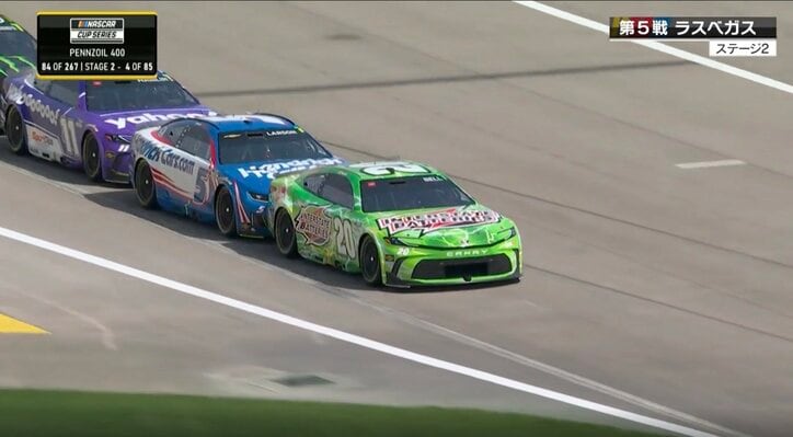 ピット入口で押し合い→トヨタ“連続速度違反”の珍事 大失態に激昂のドライバーがまさかの逆転Vも「やっちゃった」「怒ってはるで」 NASCAR 2026/03/21 14:30 拡大する 【NASCAR】第5戦 ペンズオイル400(ラスベガス・モータースピードウェイ/日本時間3月16日) 全米で人気ナンバーワンのストックカーレース、NASCAR(ナスカー)の第5戦が開催され、デニー・ハムリンがピットロードの速度違反でペナルティを受けながらも優勝を飾った。 ステージ2が再開される前の84周目、多くのマシンがタイヤ交換と給油のため、一斉にピットロードへ向かう。先頭のベルに続いて、2位カイル・ラーソン、3位デニー・ハムリン、4位タイ・ギブス、5位バッバ・ウォレスと、ラーソン以外の4台のマシンがトヨタ・カムリだった。 続きを読む