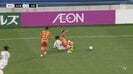長いボールを広島の9番が前線で収めたように見えたが、名古屋のDF高嶺朋樹が積極的に前へと出る守備でマイボールに。その直後に物議を醸す場面があった。