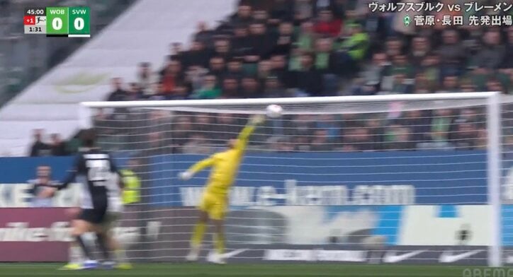 なんだこれ…!?ブレーメンGK長田澪、思わず二度見する“神プレー”「鳥肌立った」衝撃の“指先スーパーセーブ”→場内から“ミオコール” ブンデスリーガ 2026/03/22 21:45 拡大する 【ブンデスリーガ】ヴォルフスブルク 0-1 ブレーメン(日本時間3月21日/フォルクスワーゲン・アレーナ)ブレーメンの日系ドイツ人GK長田澪が、衝撃のビッグセーブでチームを救った。敵地に訪れたサポーターからは「ミオコール」が飛び出すほどのスーパープレーだった。ブレーメンの守護神として活躍する長田は、日本時間3月21日に行われたブンデスリーガ第27節のヴォルフスブルク戦でも先発で出場。序盤からビッグセーブを連発してチームを鼓舞した。 続きを読む