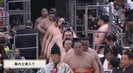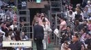 そして序ノ口優勝決定ともえ戦を制した阿龍(中村)が表彰状を受け取り、東の花道から引き上げようとしたその直後、急ぎ足で幕内土俵入りが始まった。阿龍は幕内力士が花道から続々と出てきたため、館内を後にすることができず、花道脇で待機する事態に。
